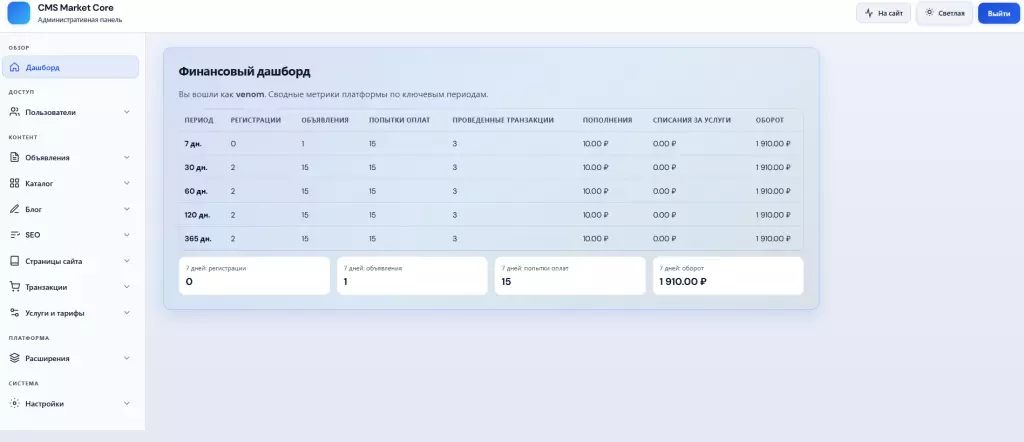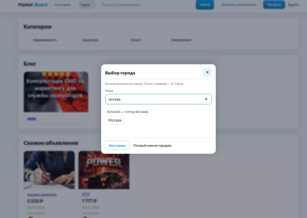 CMS для запуска доски объявлений и маркетплейсов цифровых услуг, цифровых товаров, физических товаров.