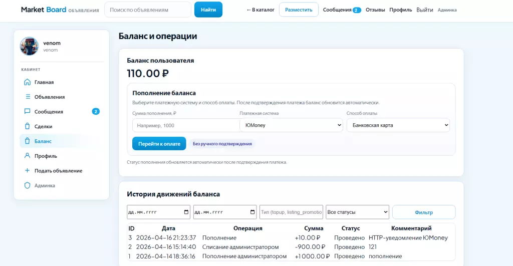 ДЕМО: https://market.bbtec.ru/